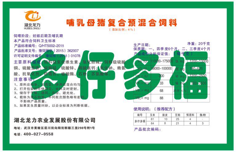 湖北龍力農業(yè)發(fā)展股份有限公司坐落于武漢市黃陂區前川街向陽街群順三里298號附1號。公司成立于2014年6月,公司自成立以來把“創(chuàng)全球最大養(yǎng)豬綜合服務”為企業(yè)愿景。致力于打造教保料品牌”作為公司發(fā)展的明確目標。公司一直致力于豬營養(yǎng)的研究和開發(fā),積極與國內外高校和科研機構合作,推廣養(yǎng)豬技術、動物營養(yǎng)新概念,向世界農牧企業(yè)學習與合作。公司采用國內先進的生產工藝,選擇高精度電子配料秤,高均勻度、無殘留混合機等先進設備....